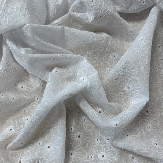 Embroidered Eyelet Cotton Voile - Medium Flowers - Ivory