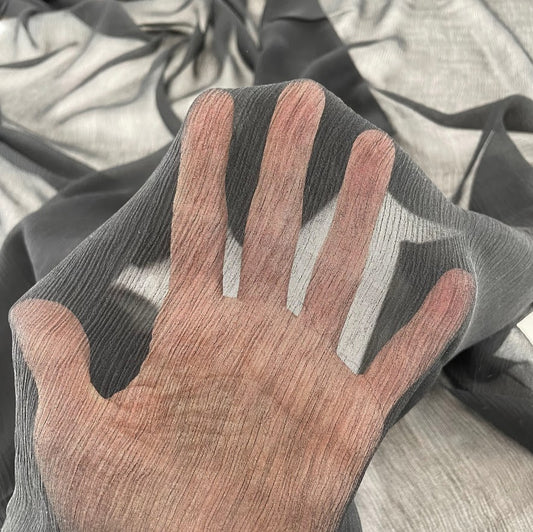 20" Remnant - Silk Crinkle Chiffon - Black - 8 Momme