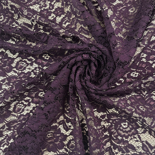 Corded Floral Lace - Nylon Cotton - Eggplant