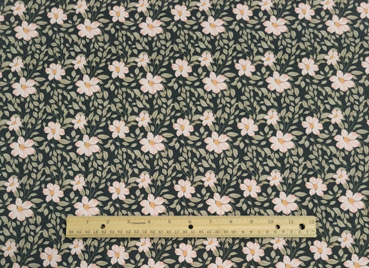 Peach Flowers - Small print - Dark Green - Cotton Jersey Knit