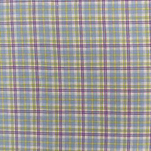 Yarn Dyed European Linen Plaid - Green, Purple & Blue Check