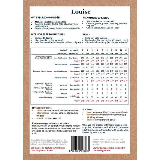 Ikatee - LOUISE Shirt & Dress - Kids 3-12Y - Paper Sewing Pattern