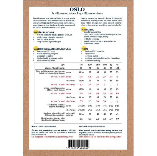 Ikatee - OSLO Shirt & Dress - Baby 6M-4Y - Paper Sewing Pattern