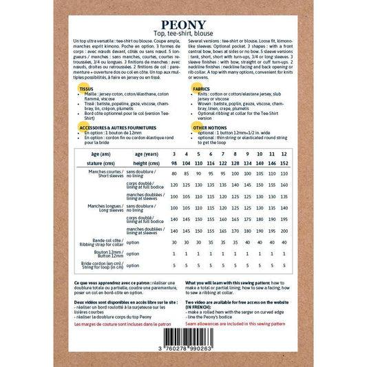 Ikatee - PEONY Top - Kids 3/12Y - Paper Sewing Pattern