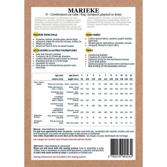 Ikatee - MARIEKE Jumpsuit, playsuit & dress - Kids 3/12 - Paper Sewing Pattern