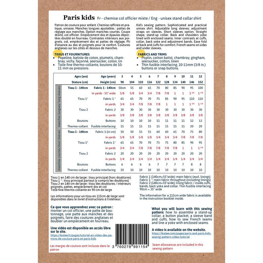Ikatee - PARIS Kids Shirt - 3/12Y - Paper Sewing Pattern