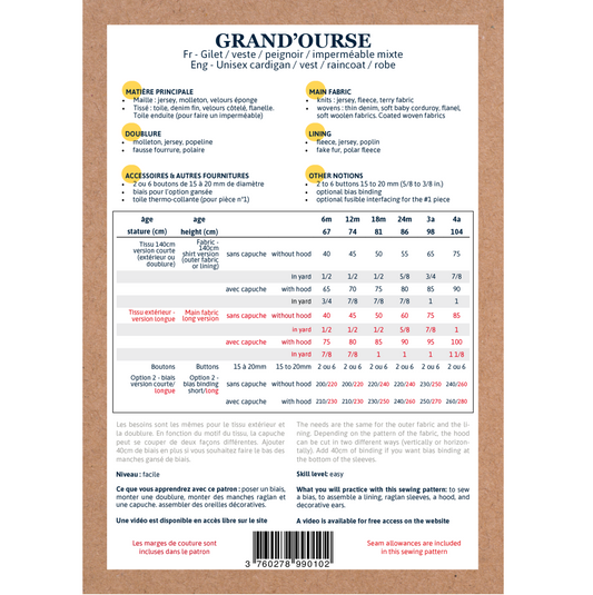 Ikatee - GRAND'OURSE Cardigan - Baby 6M/4Y - Paper sewing pattern
