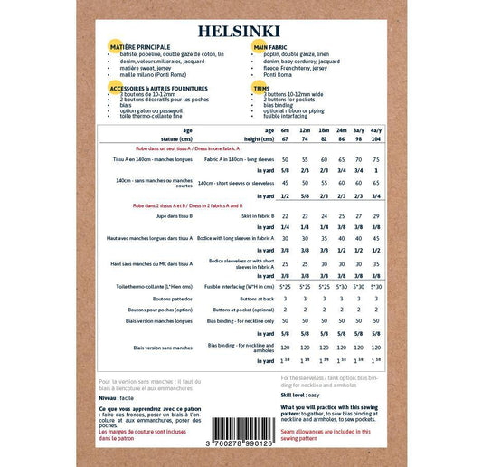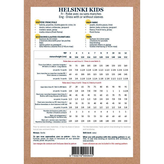 Ikatee - HELSINKI Kids dress - 3/12Y - Paper Sewing Pattern
