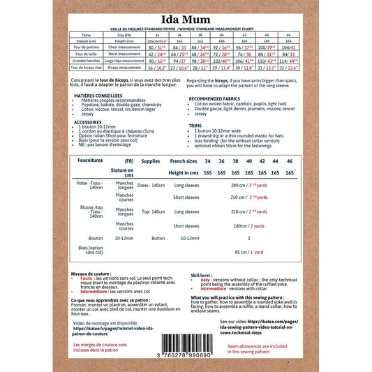 Ikatee - IDA Adult blouse & dress - Woman 34/46 - Paper Sewing Pattern