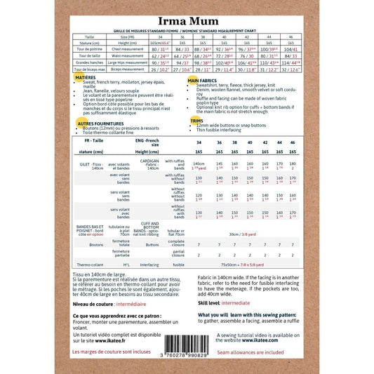 Ikatee - IRMA Adult Cardigan & light vest - Woman 34/46 - Paper Sewing Pattern