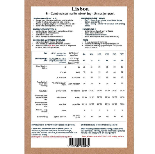 Ikatee - GABY Jumpsuit -PJ - Unisex 3/12 - Paper Sewing Pattern