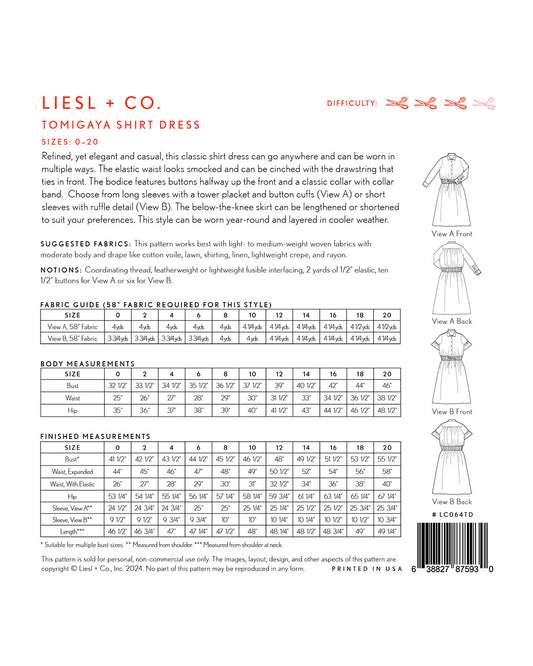 Liesl + Co - Tomigaya Shirtdress Sewing Pattern