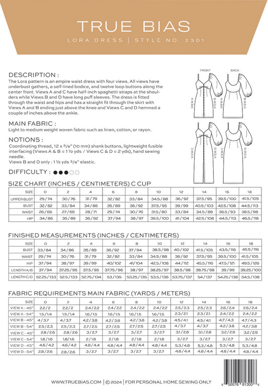 Lora Dress - 0 - 18 - By True Bias Patterns