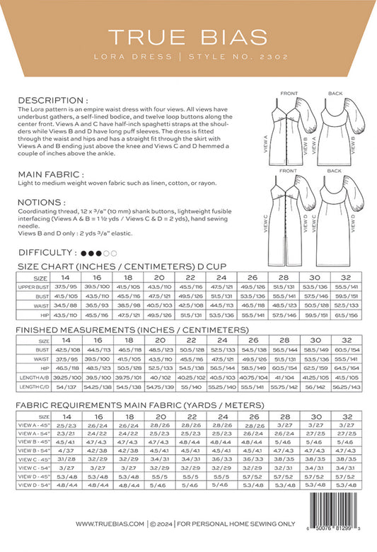Lora Dress - 14 - 32 - By True Bias Patterns