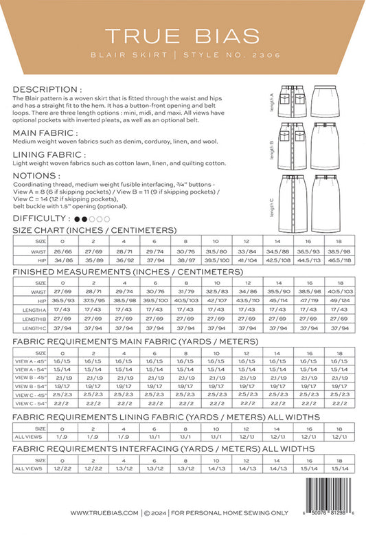 Blair Skirt - 14- 32 - By True Bias Patterns