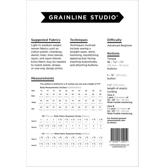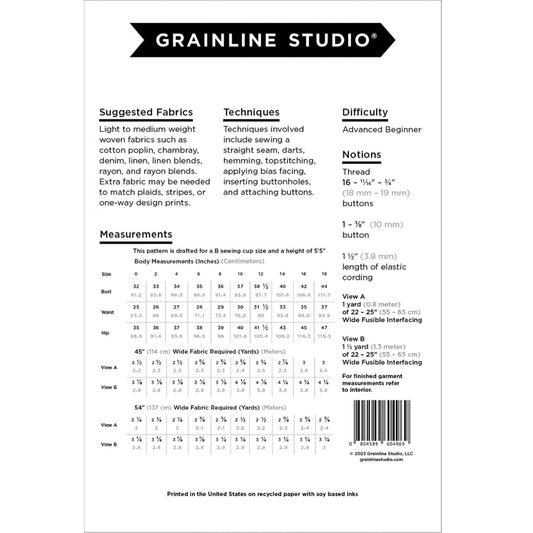 Vendor:Grainline StudioRegular price £16.75 GBPSale price £16.75 GBP Regular priceUnit price per£0.00 GBP