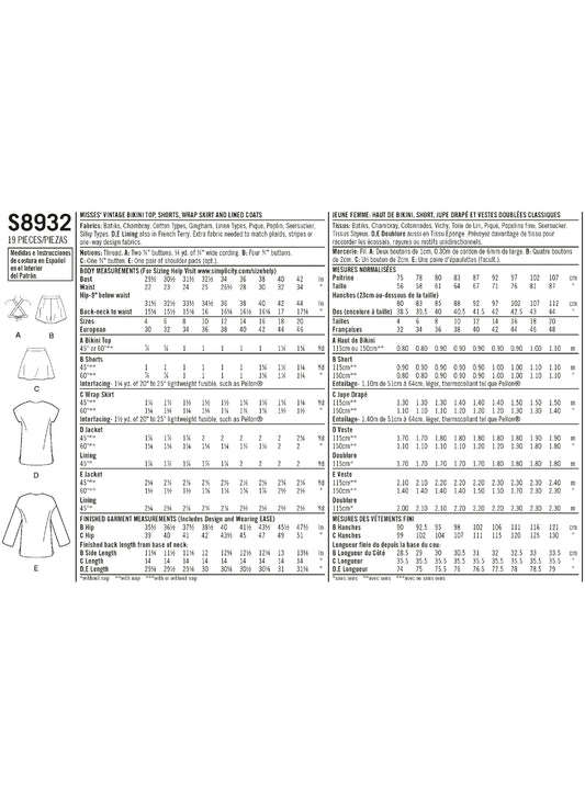 Simplicity - 1940s Misses' Sizes 4 - 12 - Vintage Bikini Top, Shorts, Wrap, Skirt and Coat