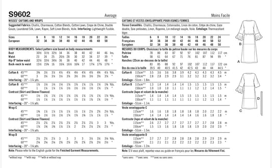 Simplicity - Misses' Sizes - 6 - 14 - Caftan & Wrap Sewing Pattern