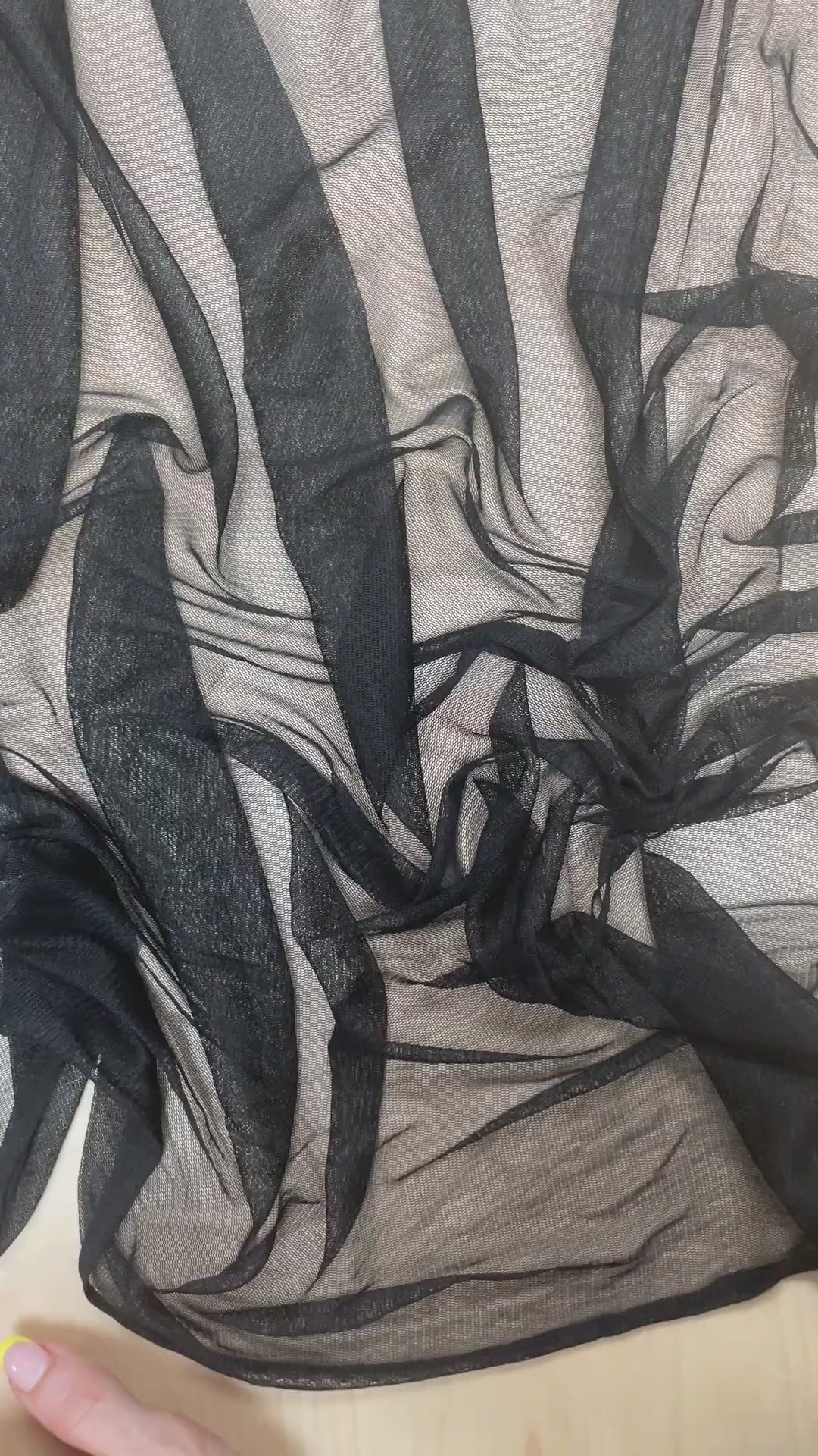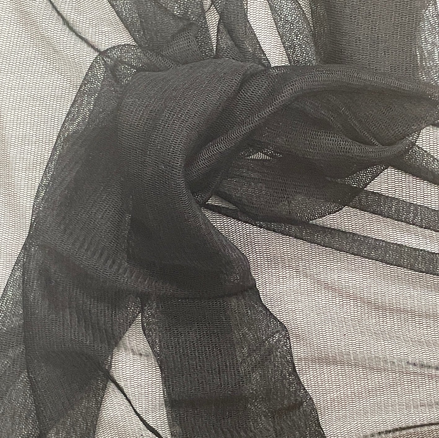 A beautiful lightweight sheer tricot knit in Black. Also called silk tulle although this is distinctly different then the rigid fabric that is also referred to as tulle. This has a very soft hand and lightweight drape.