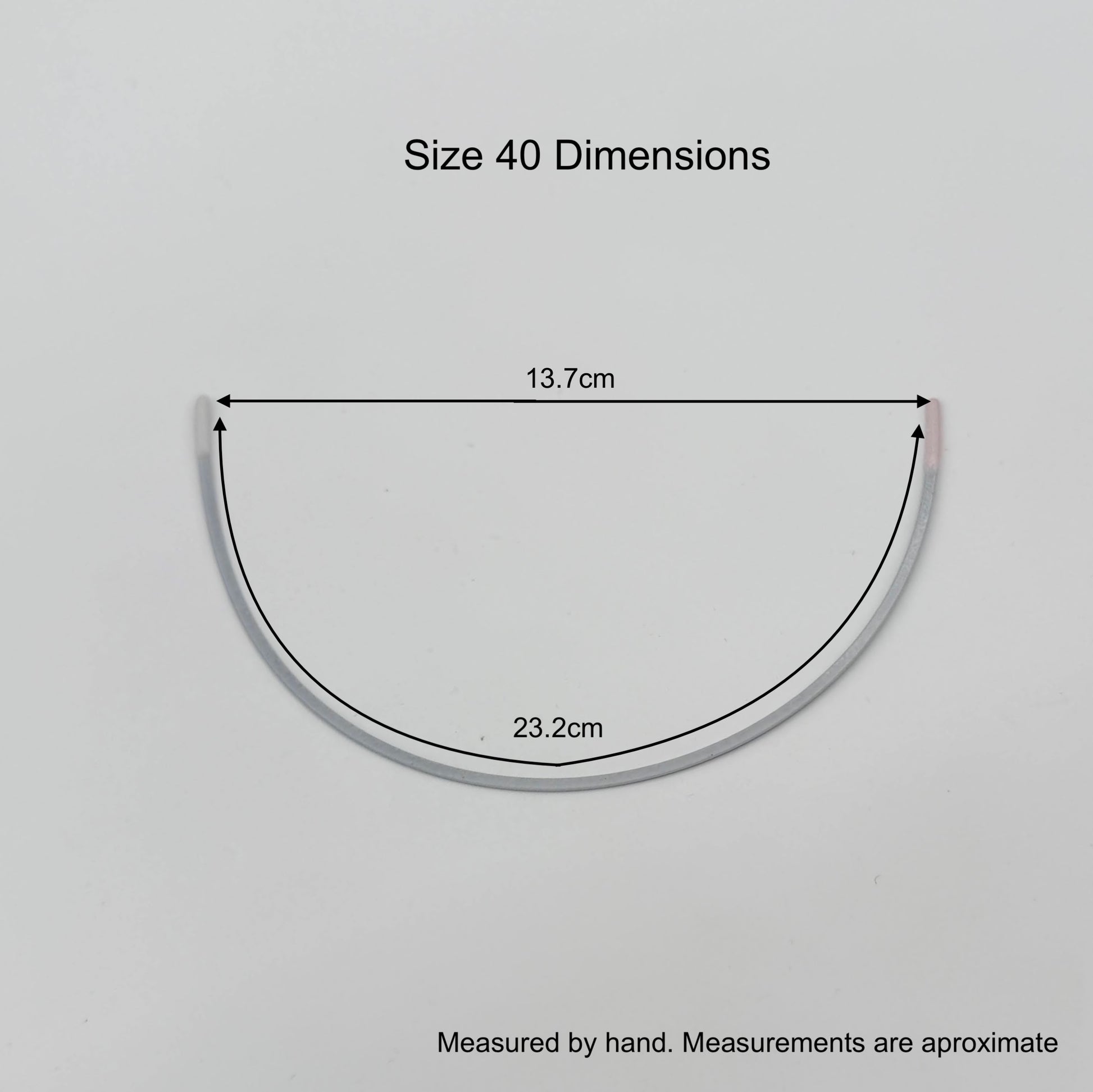 White shaping lacquer underwire for bra making and lingerie. These are classic round underwires for sewing a full coverage bra.
