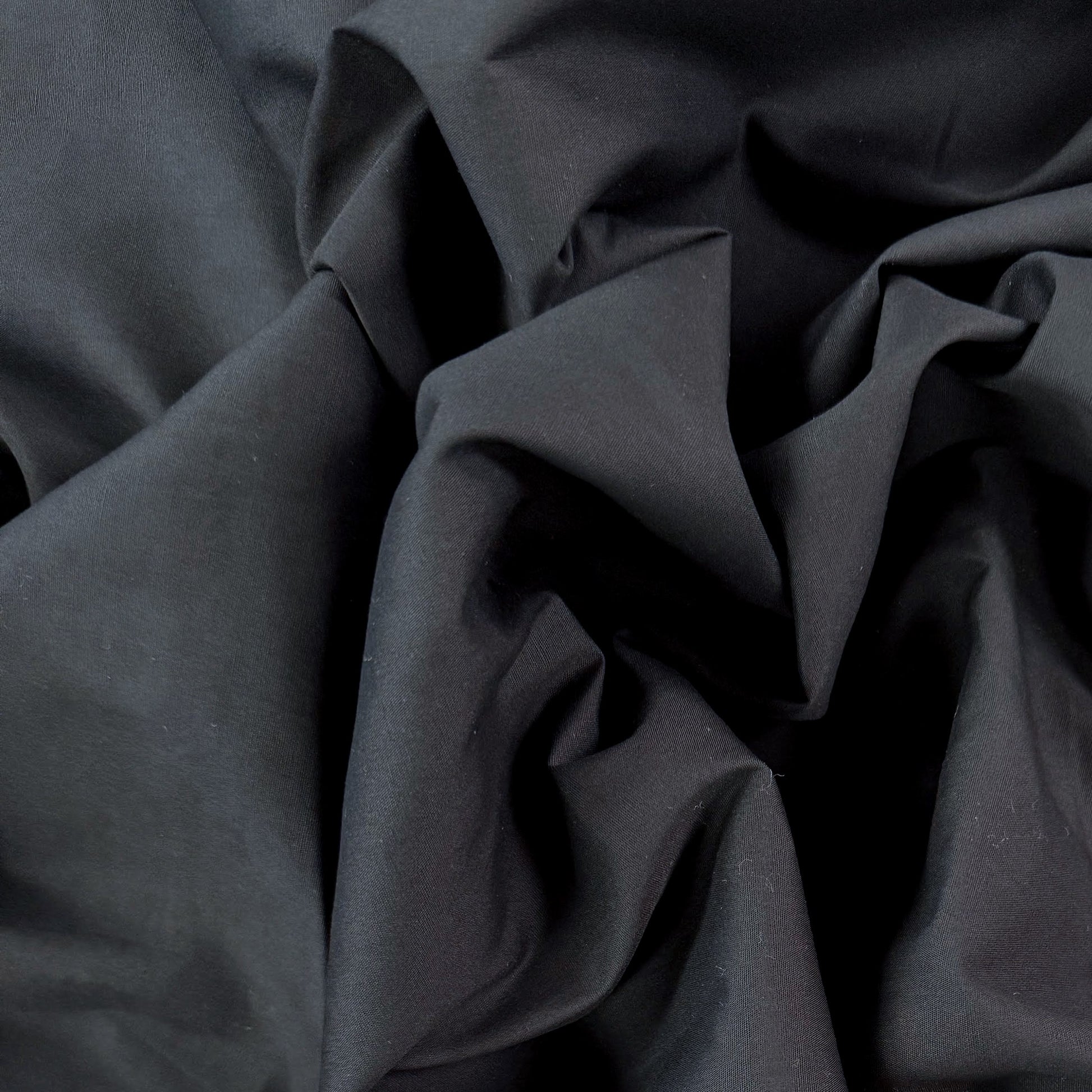 Plain black 100% cotton poplin fabric. Smooth crisp hand. Soft, breathable and versatile, this fabric is the perfect blank canvas for your sewing needs.