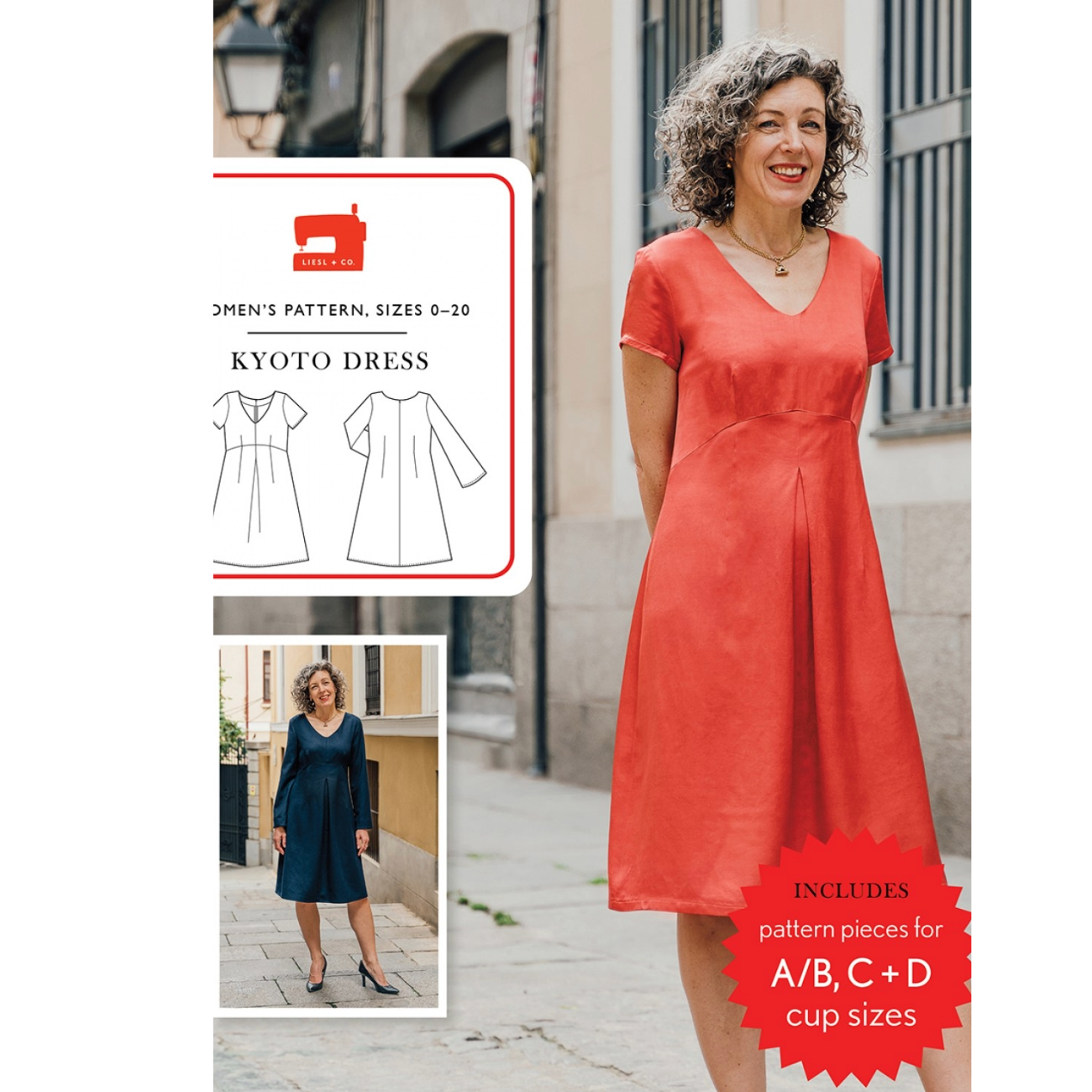 The smooth lines of this body-grazing, semifitted, V-neck dress are both elegant and contemporary. Details include a curved waist seam, front and back darts for shaping, an inverted box pleat at the center-front skirt, and short- and long-sleeve options. This pattern includes cup sizes and an invisible zipper at the back.