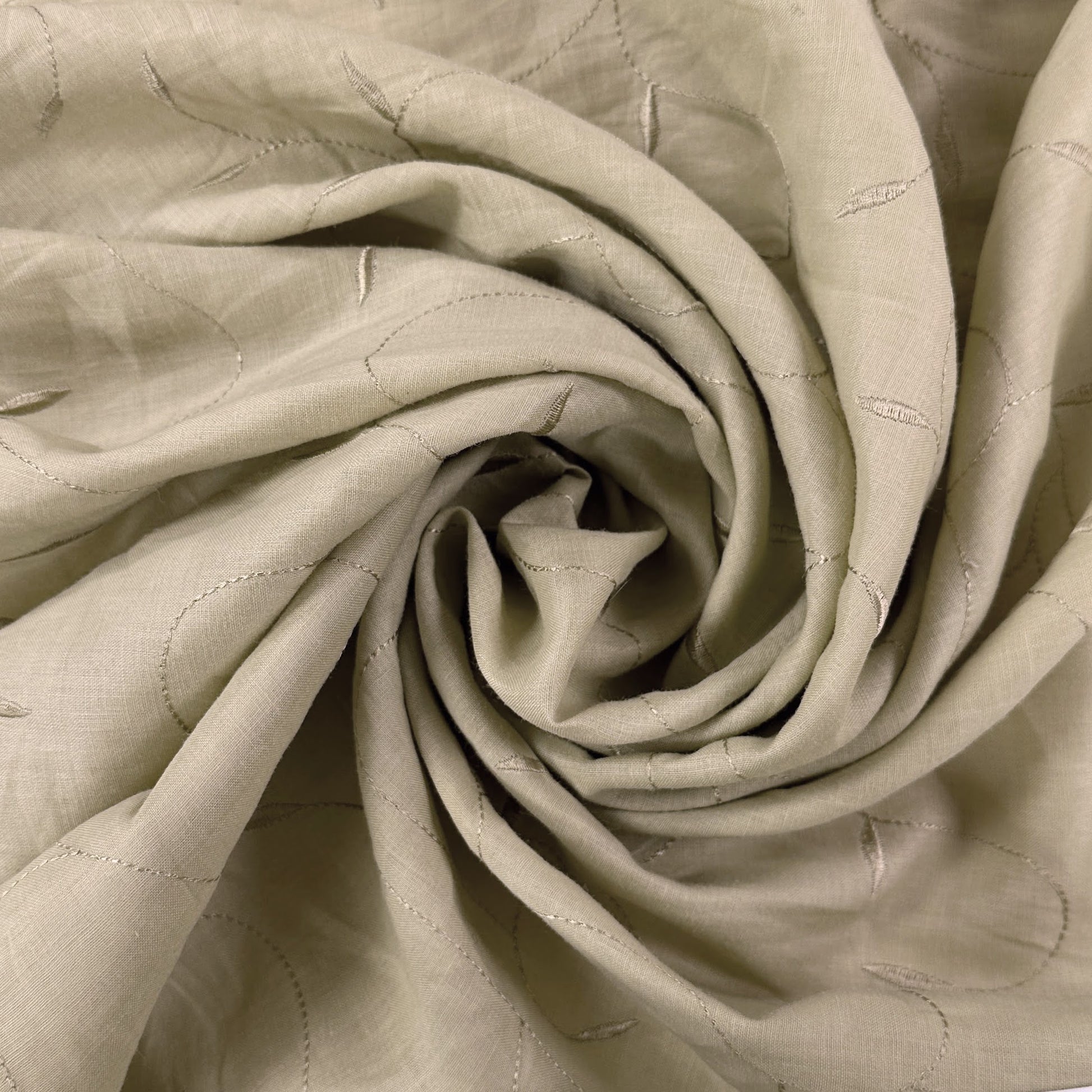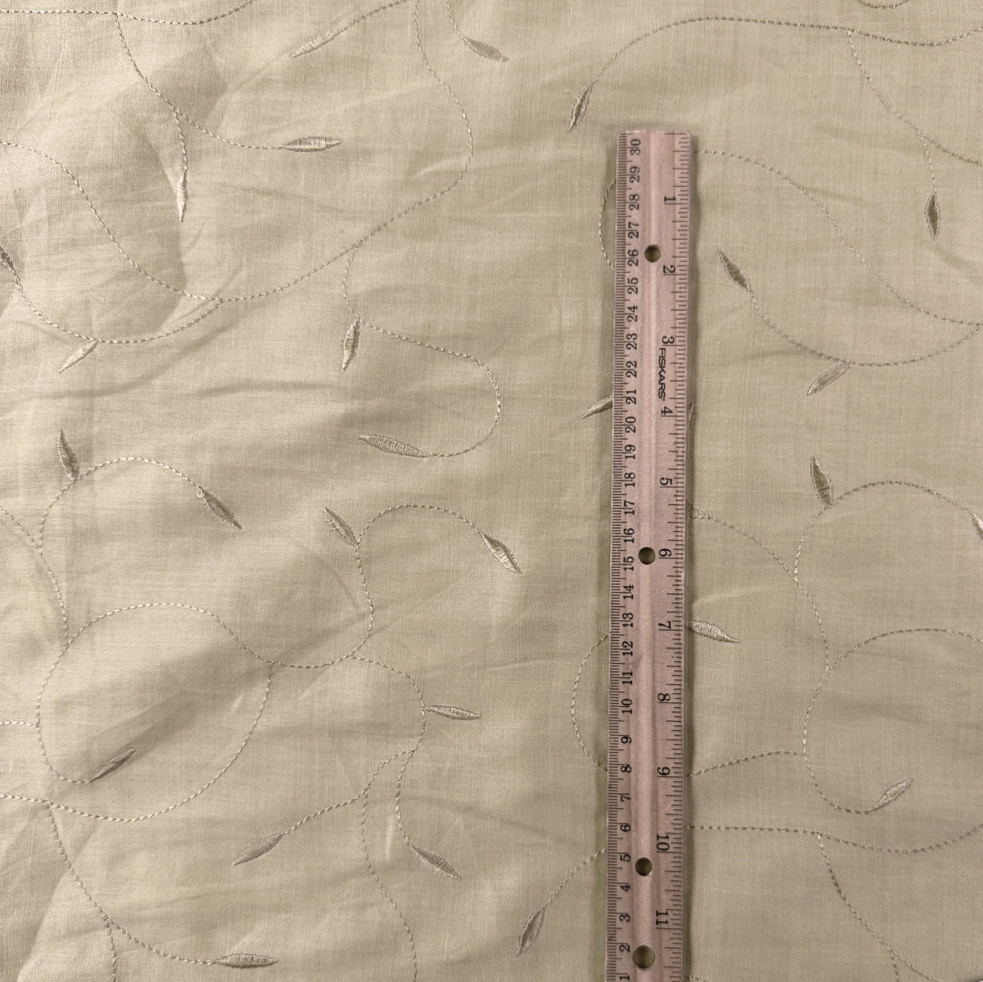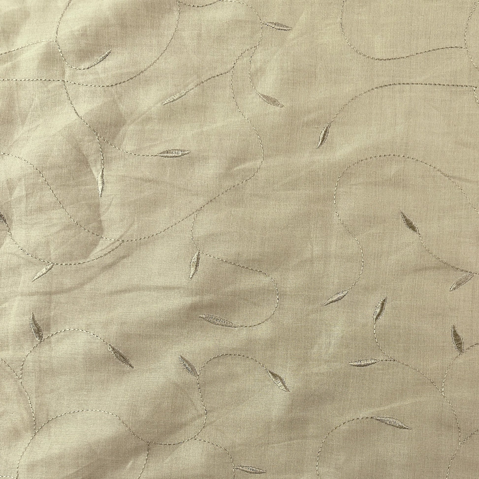 Beige Embroidered Leaves - Cotton /Linen Fabric - Film Studio Deadstock
