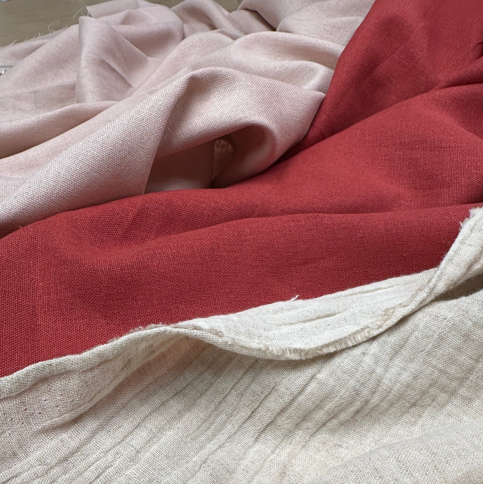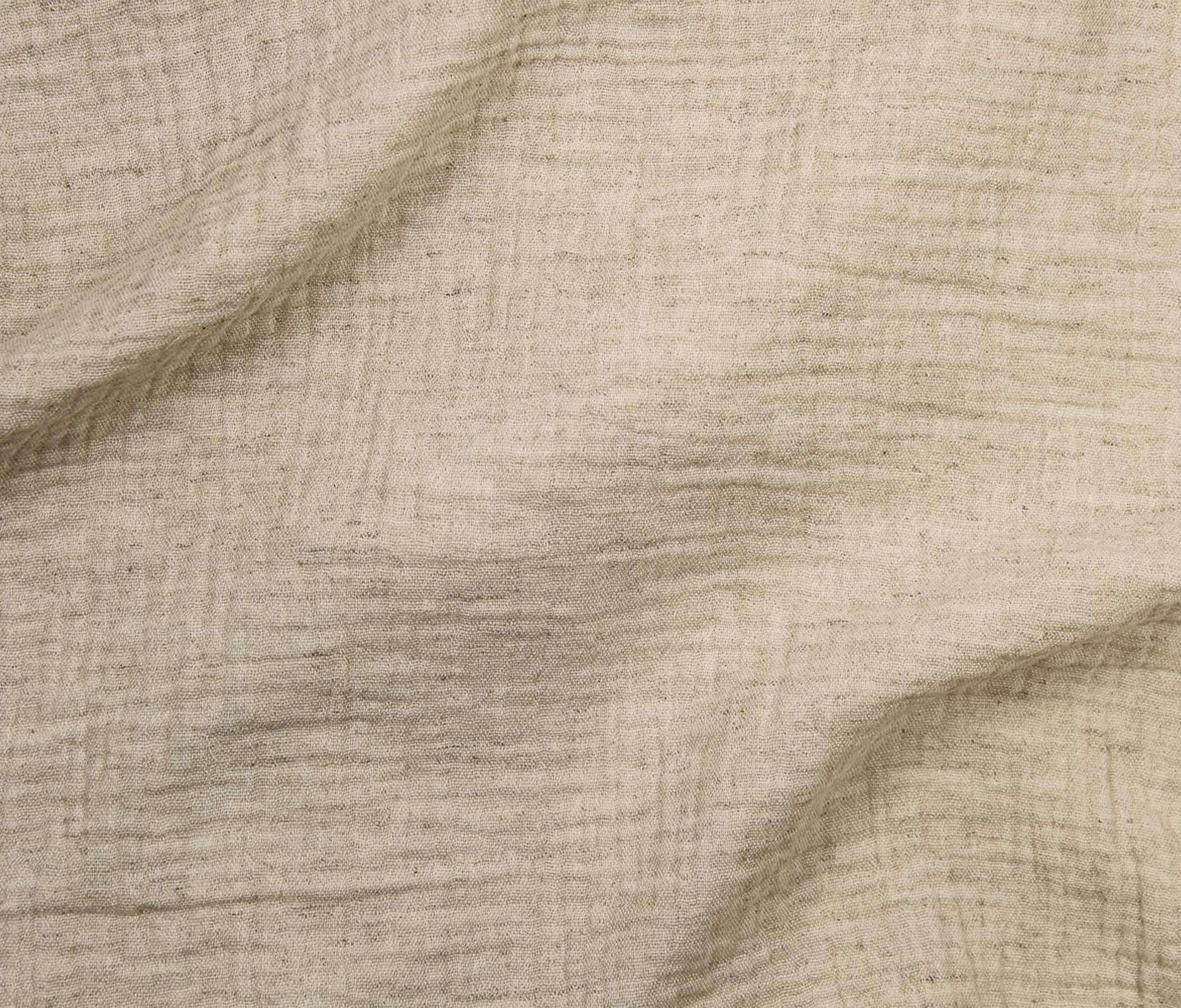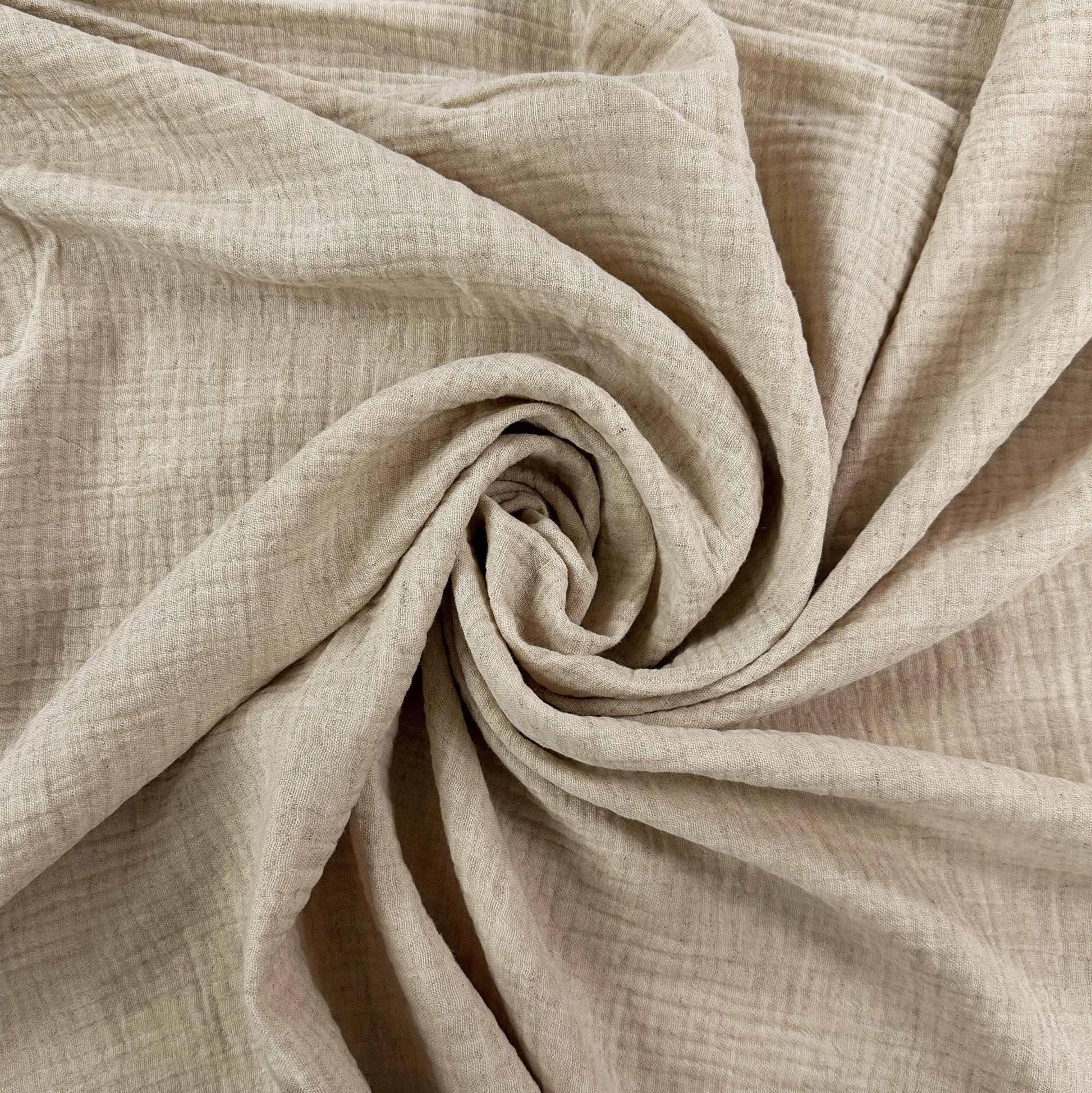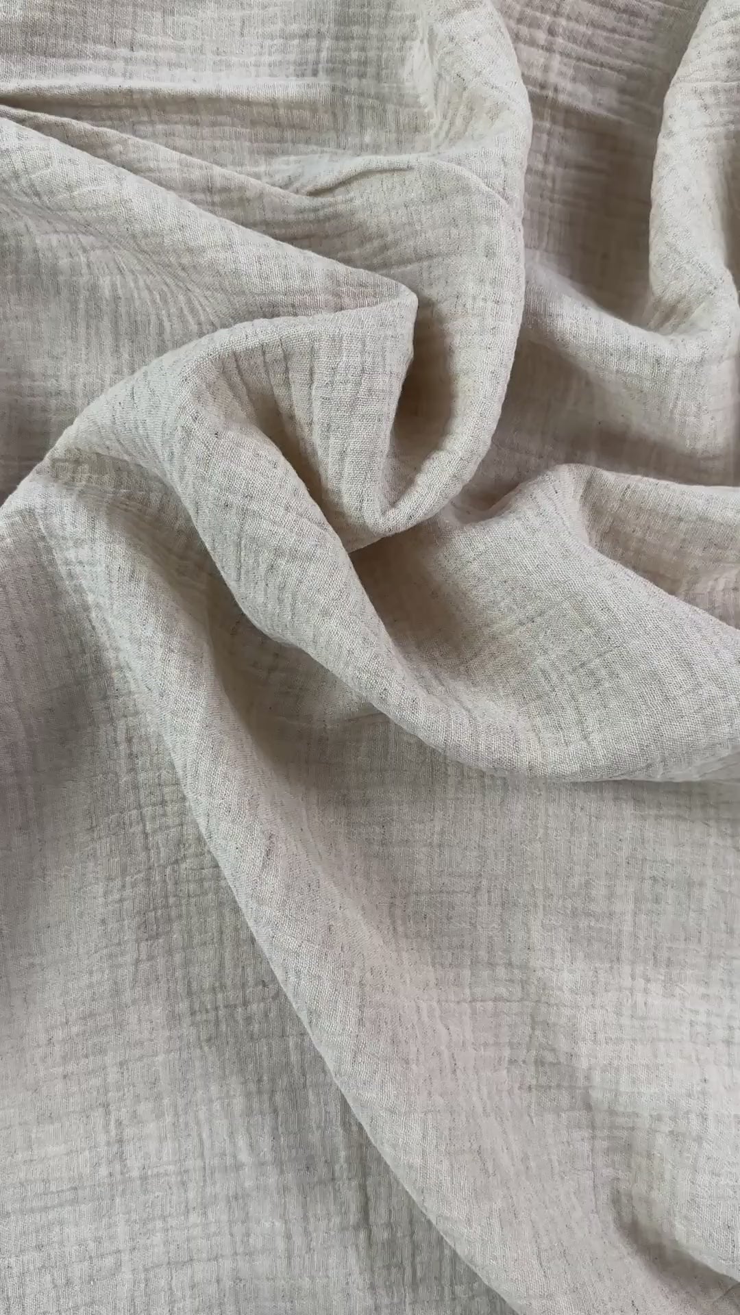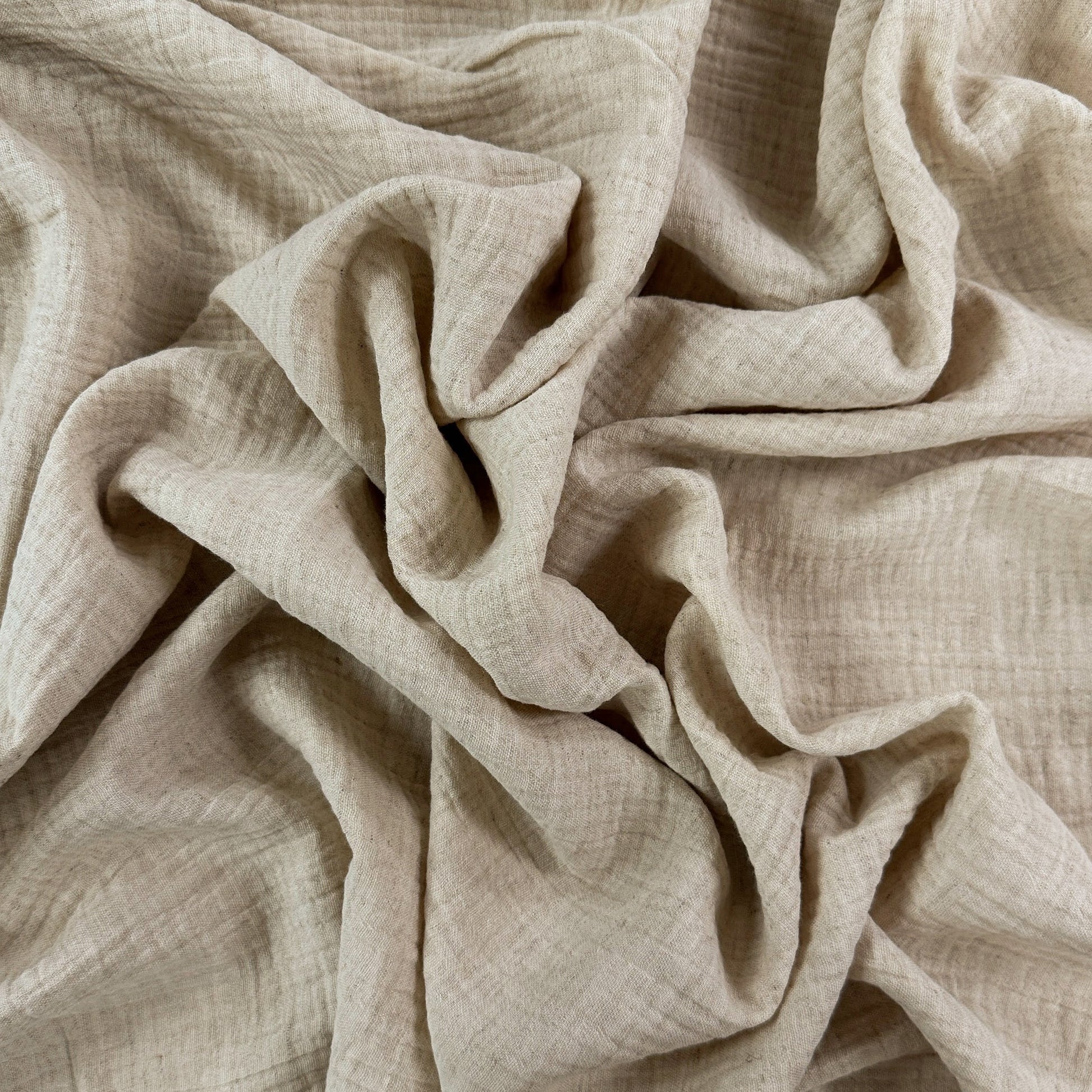 A cotton linen double gauze fabric in the shade natural. This fabric is loosely woven and incredibly soft. Perfect for flowy and relaxed garments such as tops, dresses, baby clothes & more.