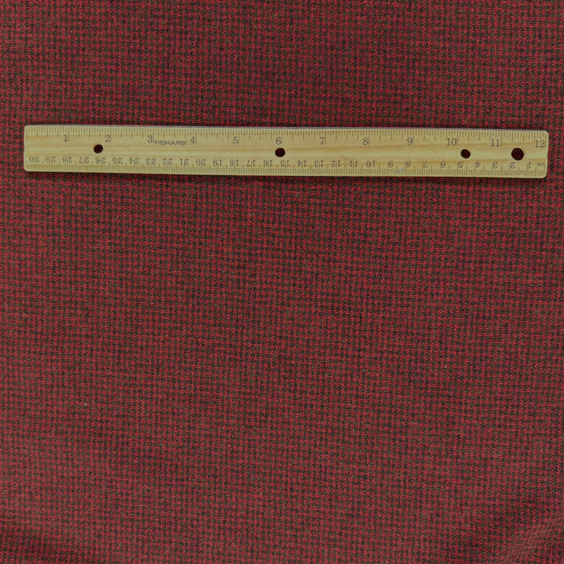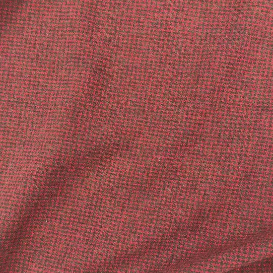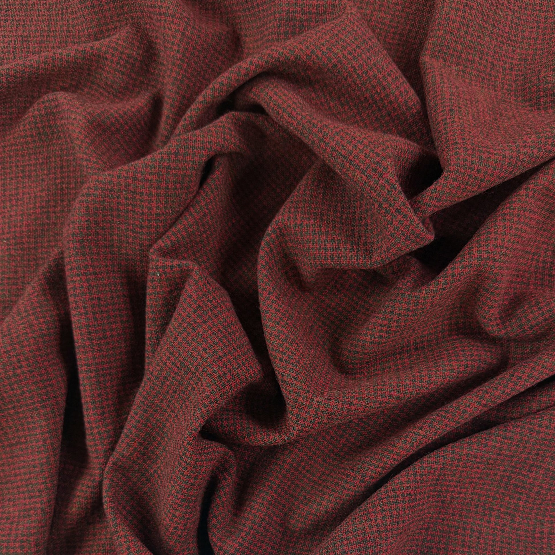 Stay cozy this fall with this red and muted dark green wool houndstooth fabric. A lovely midweight fabric, perfect for transitional and cool weather garments. Perfect for light jackets, vests, blazers & more. This is a more loosely woven wool offering more drape and breathability.