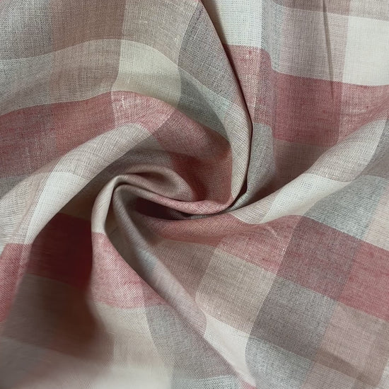 Yarn Dyed 100% Linen Plaid - Red and Cream Check - 59"