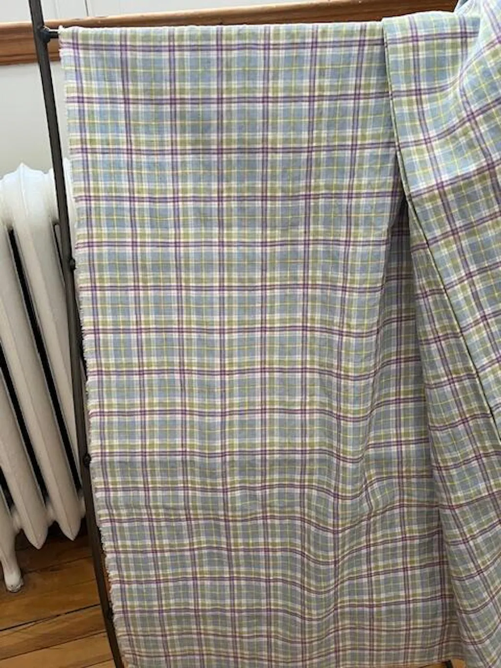 Yarn Dyed European Linen Plaid - Green, Purple & Blue Check