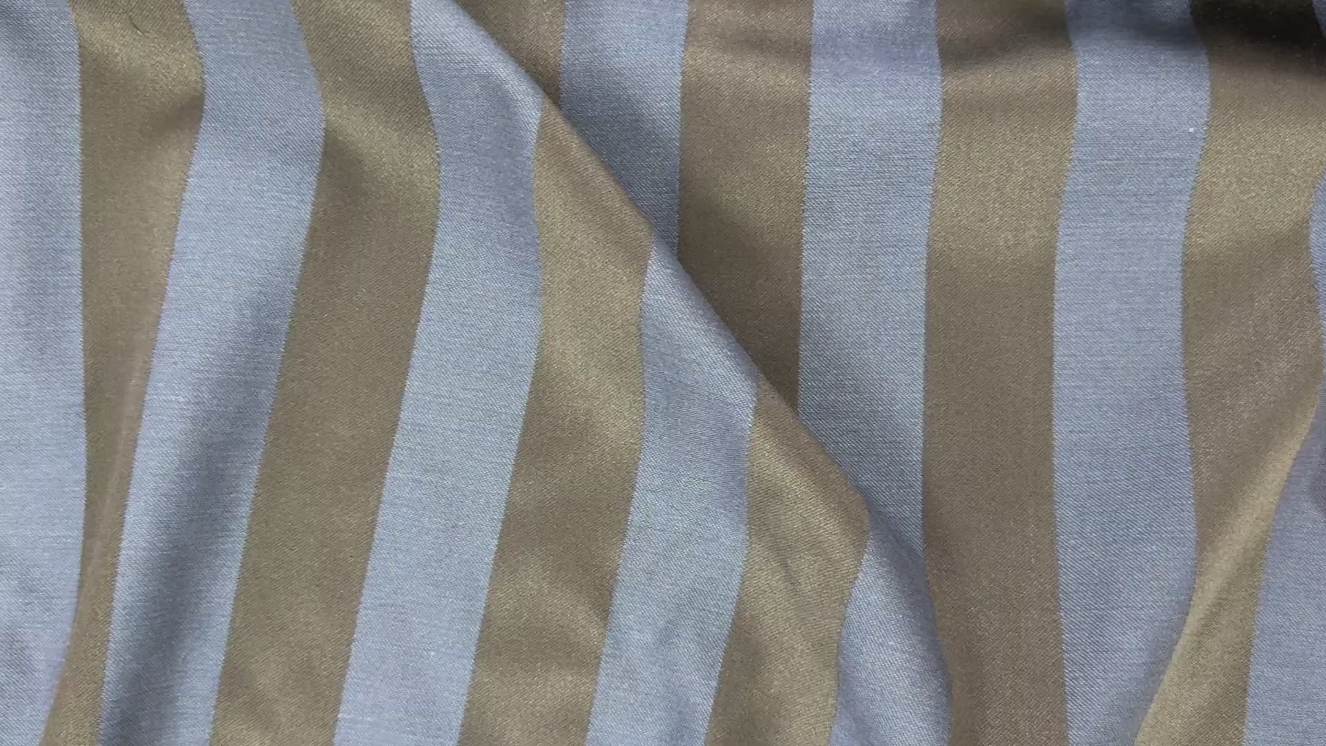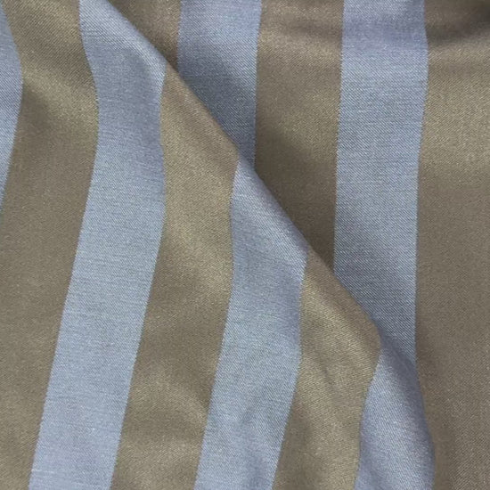 A heavy bottom weight wool and viscose fabric with large black and blue stripes. For bags, coats, jackets, upholstery projects & more.